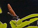 Die Weibchen sitzen im Juni an bestimmten sonnigen Stellen auf Blättern oberhalb