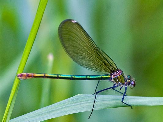 eine weibl. Blauflügel-Prachtlibelle (Calopteryx Virgo)