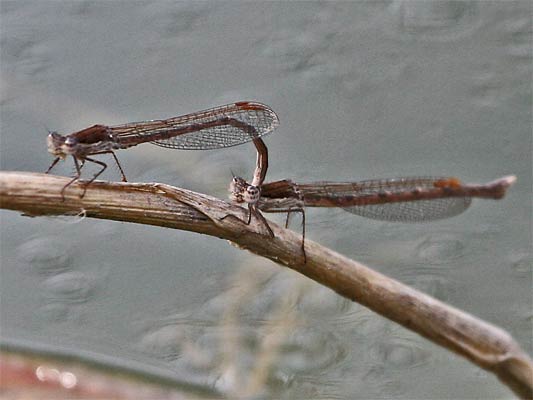 erste Libellenpaarung im Frühjahr: Gemeine Winterlibelle (Sympecma fusca) |