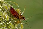 junger gemeiner Ohrwurm (?) (forficula auricularia) lebt in der wilden Möhre (daucus carota) s. Apiaceae-im-Glemstal |