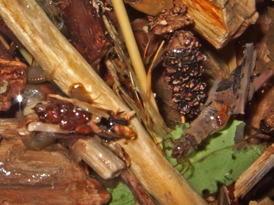 | Fragen über Fragen | 2 Puppen, 2 Nachtfalter, 1 haaríge Raupe, viele Ohrwurm-hinterteile | viele durchsichtige Ohrwürmer waren bei den Schwammspinnern → Trägspinner-im-Glemstal |