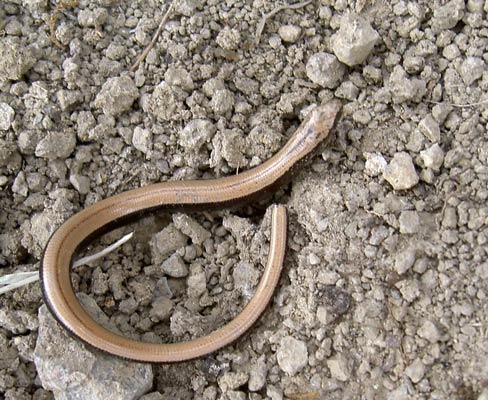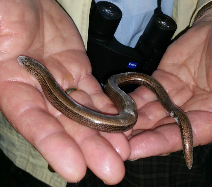 eine Blindschleiche lag spätabends, eigentlich schon nachts auf dem von der Sonne noch warmen Panoramaweg ...mehr über unser → NSG Hammelrain in Markgröningen |