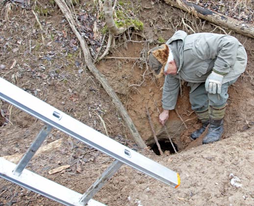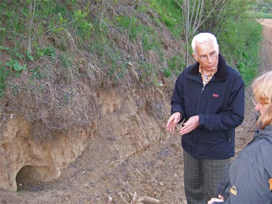 Manfred Herda demonstriert, wie man einfach erkennt, ob ein Dachsbau befahren wird |
