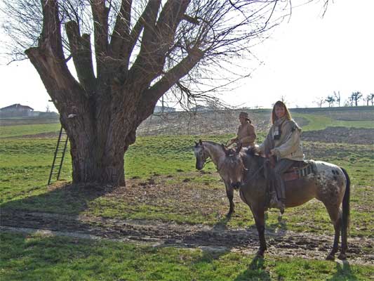 | große Kopfweide "Paulinenweise" bei Schwieberdingen mit Reiterinnen