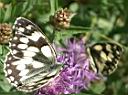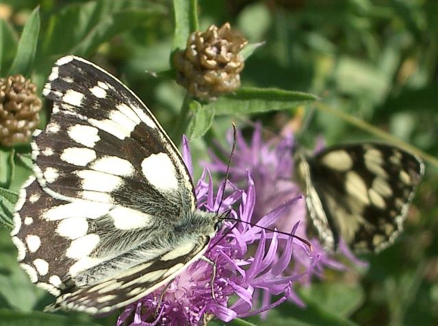 Man sieht dann auch oft zwei Tiere auf einer Blüte. Schachbrettfalter