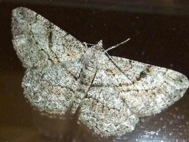 Falter (!): Zackenbindiger Rindenspanner (Ectropis crepuscularia) (Danke an Norbert Baasner für die Artbestimmung am 18.3.2012) |
