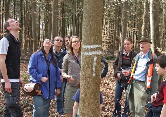 die Einblattesche wird bestaunt, der seltenste Baum im Landkreis (laut