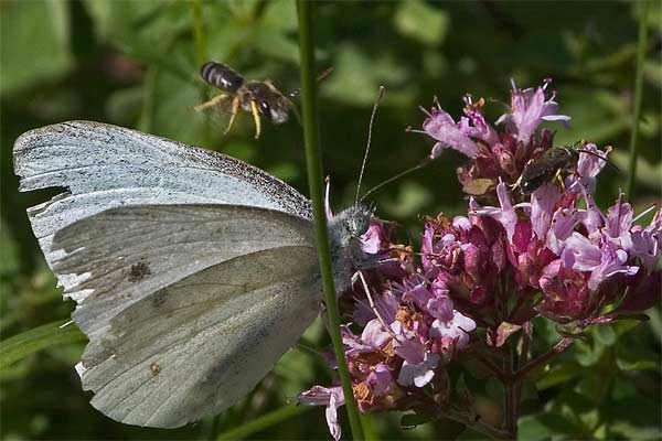 ein Kohlweissling auf Dost | Schlafender Weissling unbekannte Art |