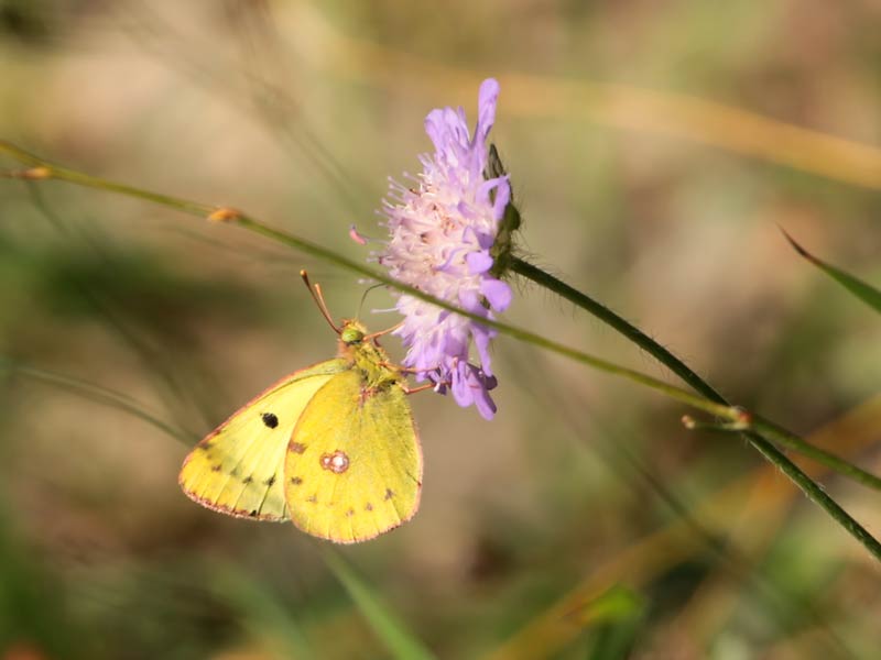 Gelbling Goldene Acht (Colias hyale) auf Skabiose (Scabiosa columbaria) mehr über unsere → Kardengewächse-im-Glemstal |