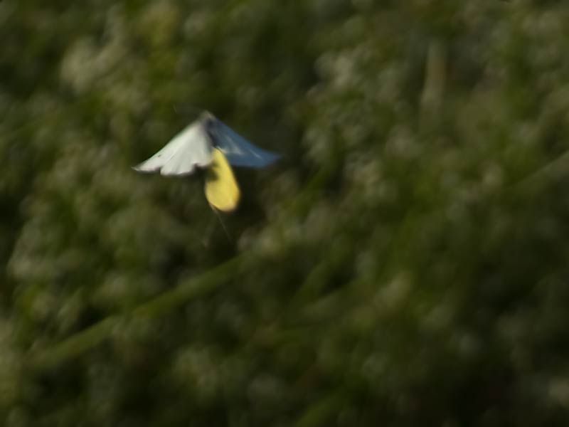 Wiese flog ein auffälliger gelben Falter mit relativ langsamen Schlägen. Mein