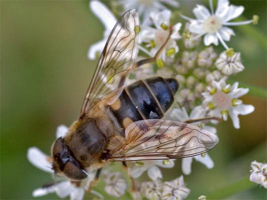 Eristalis Tenax (Mistbiene) weiblich (helle Flecken nur auf dem ersten Segment) |