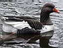 - D: Höckergans: hinten wie Graugans, aber schwarzer Schnabel (Anser