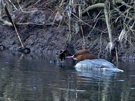 dieser Biegung der Enz ein Zwergsäger, ein sehr scheuer Vogel. Das Männchen des
