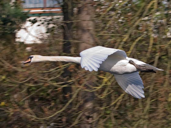 | Schwäne im Sonnenlicht: 3 Schwäne flogen