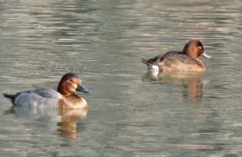 rechts: weibliche Moorente (Aythya nyroca) im Neckarkanal Pleidelsheim. links: weibl. Tafelente (Aythya ferina) (Danke an Jochen Völlm für die Artbestimmung in 2/2011) |