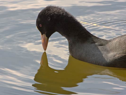 ...schaut ins Wasser | ...taucht ab | ...und trocknet nach dem Tauchgang das Gefieder | Blässhuhn