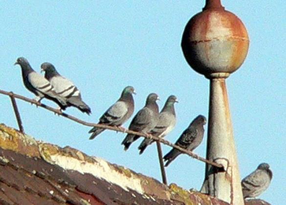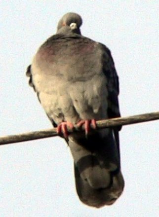 | Haustaube alias Strassentaube auf Stromleitung (Danke an Norbert Baasner für den Hinweis zur Artbestimmung in 5/2010) |