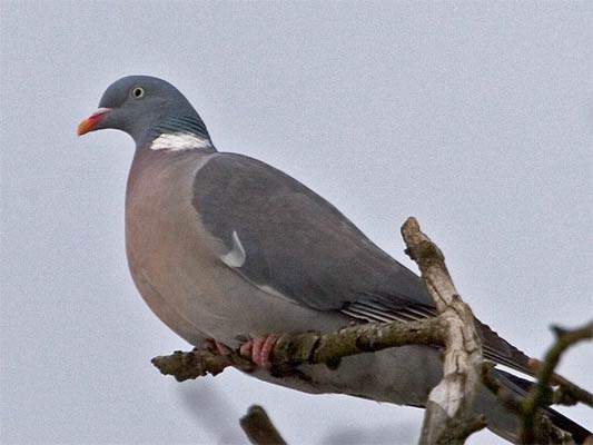 Ringeltaube (Columba palumbus) erkennbar am weißen Halsfleck. |
