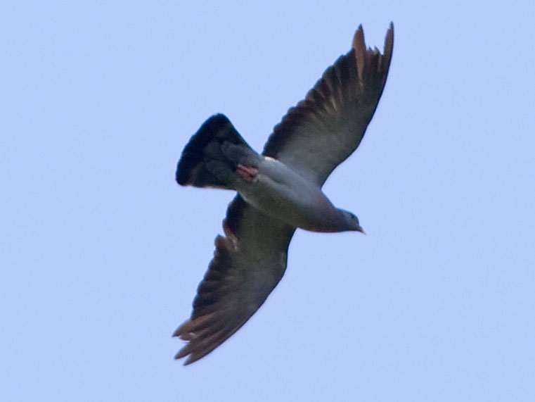 Erddeponie Froschgraben, Westseite: Hohltaube im Flug. Der schwarze Rand um die