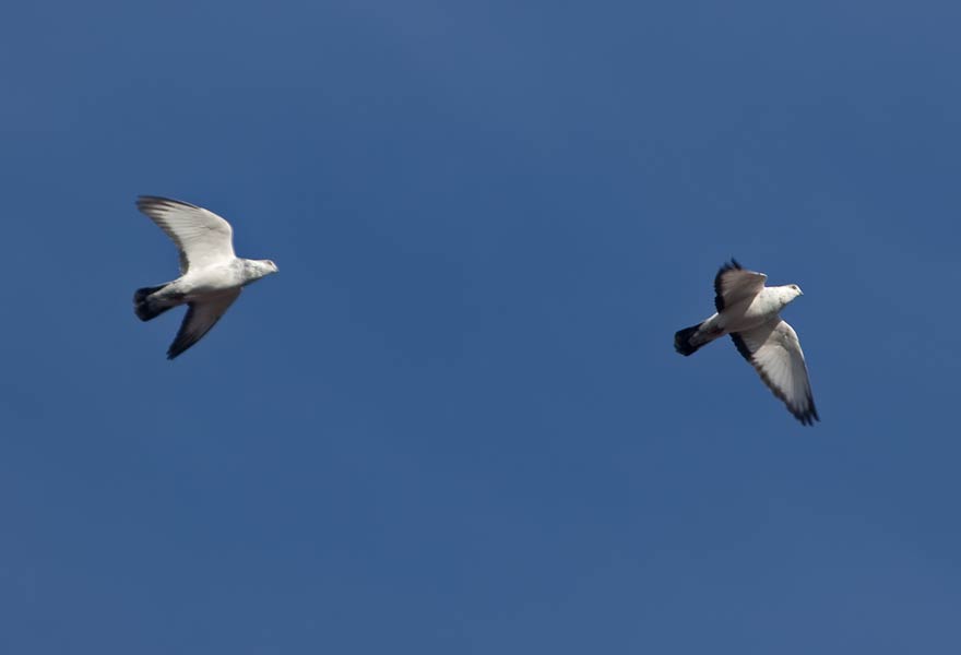 auffällige weiße Tauben über der Ölmühle Völlm in Münchingen |