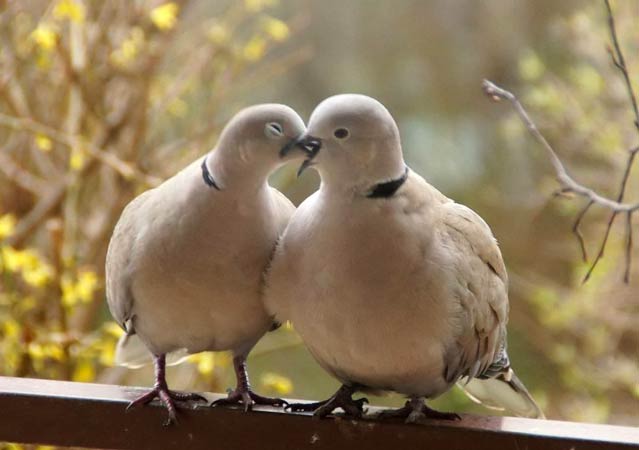 schnäbelnde Türkentauben: wirken zärtlich und verliebt |