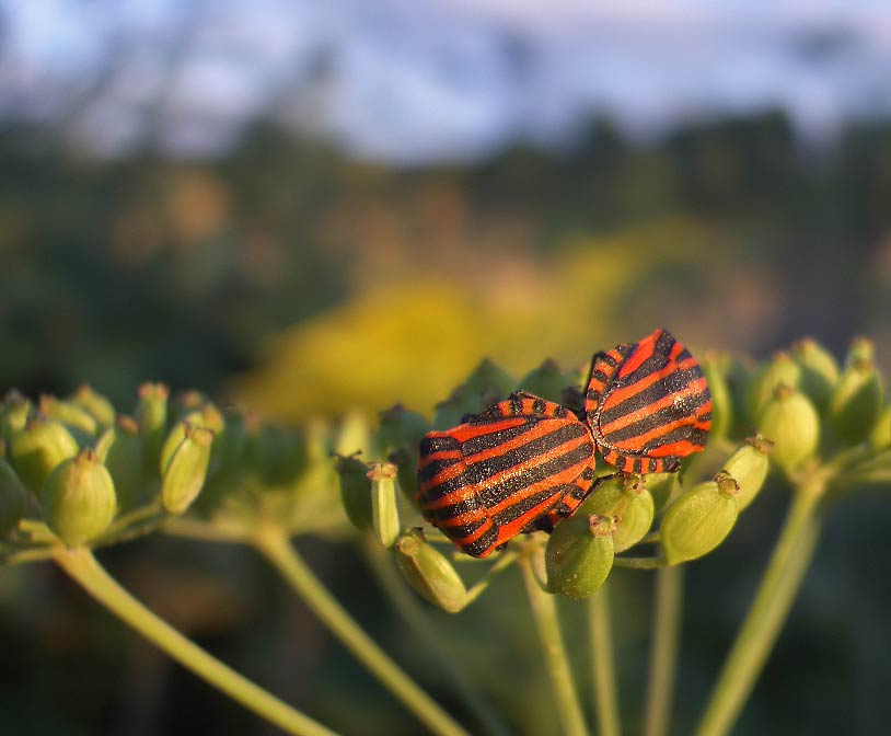 | Graphosoma lineatum | Pentatoma rufipes | Carpocoris fuscispinus | Carpocoris purpureipennis | Eurydema ornatum juv. |