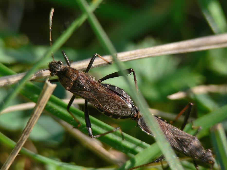 Insektenhochzeit zweier Krummfühlerwanzen (Alydus calcaratus). Oben links ist die Dame ...mehr über unser |