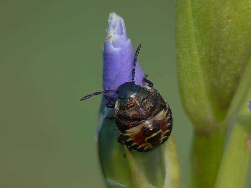 | Dolycoris baccarum | Eurydema deracea | Holcostethus vernalis | Palomena prasina | (Rhaphigaster nebulosa) |