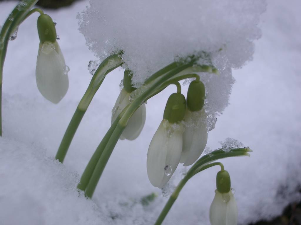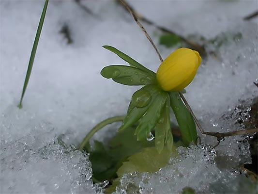 Von den 3 früh blühenden Wildblumenarten im Februar 2004 sind zwei (Schneeglöckchen und Winterling) aus