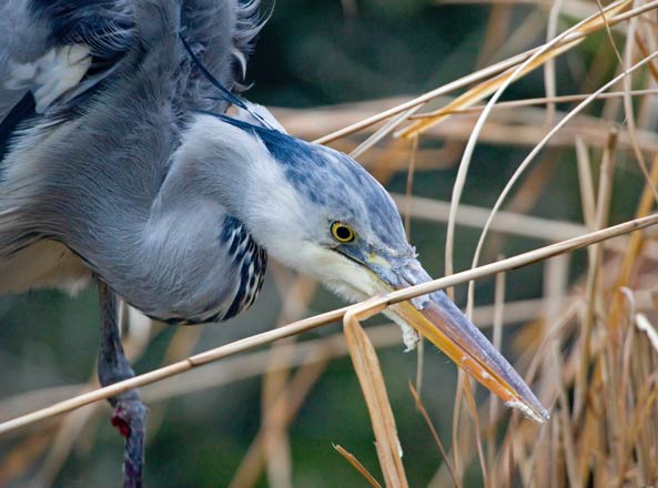 Nach harten Wintern sind unsere Graureiher jetzt sehr schwach und kommen auch in