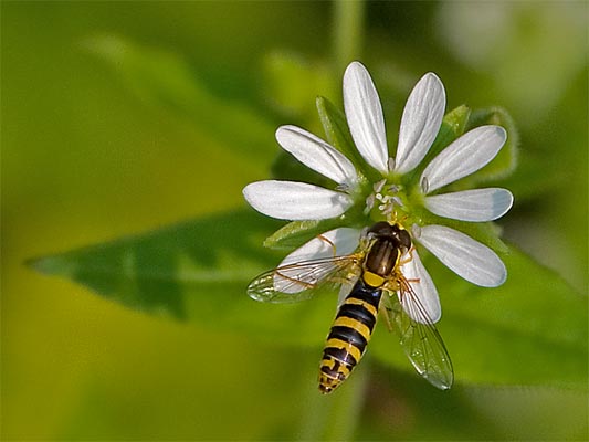An heißen Mittagen suchen die Schwebfliegen Landeplätze auf den Blüten der