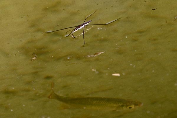 | (gerris lacustris) Ein Wasserläufer will einen Fisch fangen s. Wanzen-im-Glemstal |
