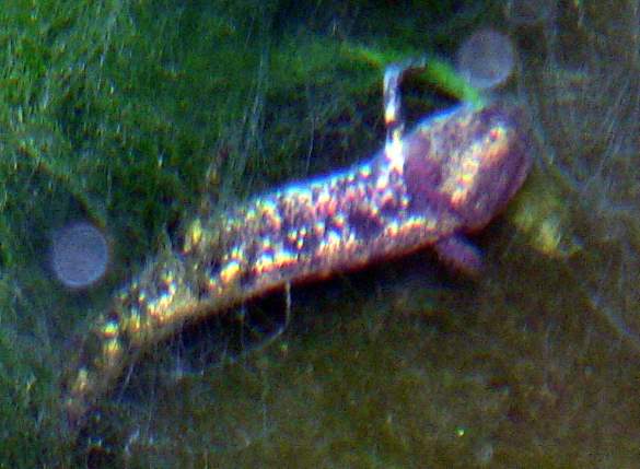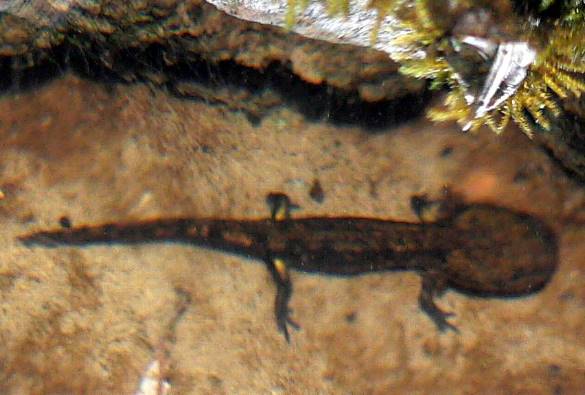 | Feuersalamanderlarve unter Wasser (ca. 20cm tief). |
