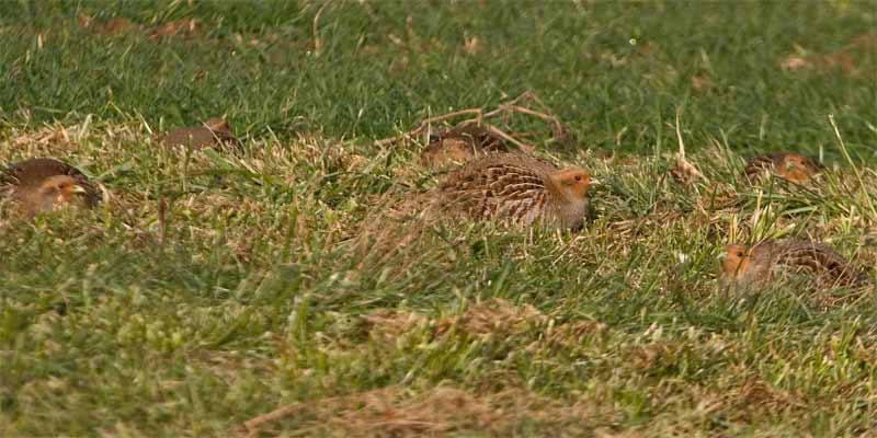 5er Gruppe im Feld beim Futtern s. Rebhuhn-im-Glemstal |