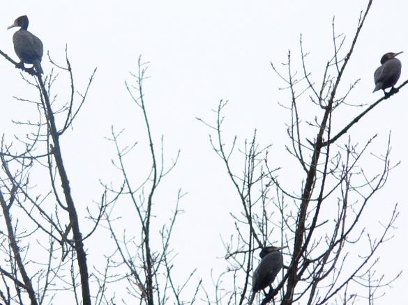 Als ich am 28.12.2004 kam, hielt ich die 5 Kormorane auf dem Baum an der Enz zunächst für Graureiher.