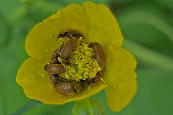 den Hahnenfussblüten. Es handelt sich um Himbeerkäfer