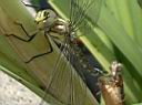 blaugrüne Mosaikjungfer (aeshna cyanea) gerade geschlüpft aus der Puppe hinten geschützte Art |