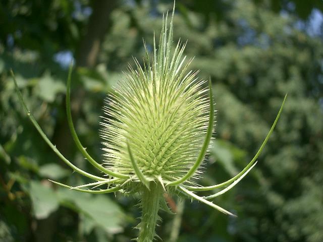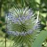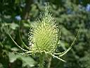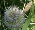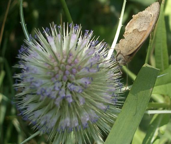 Ochsenauge auf wilder Karde (dipsacus fullonum) 8.8.04, mittags, Wiese am NABU-Biotop |