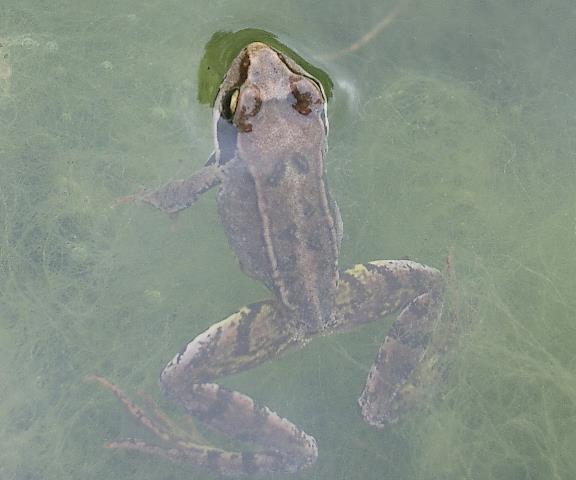 Abends am NABU-Teich war ein kleiner Frosche (ca. 4cm) im Wasser:
