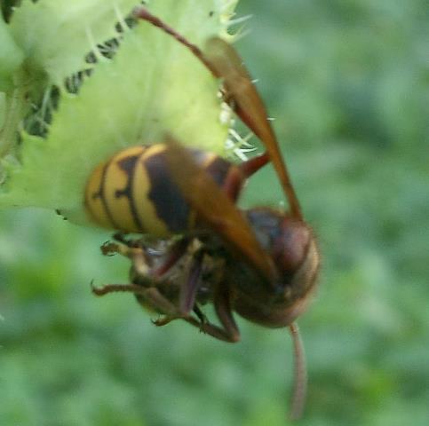 | 21.8.04, 18:30 gr. Wiese Hornisse (vespa crabro) geschützte Art mit Schmetterling als Beute neu → Hornisse im Glemstal |