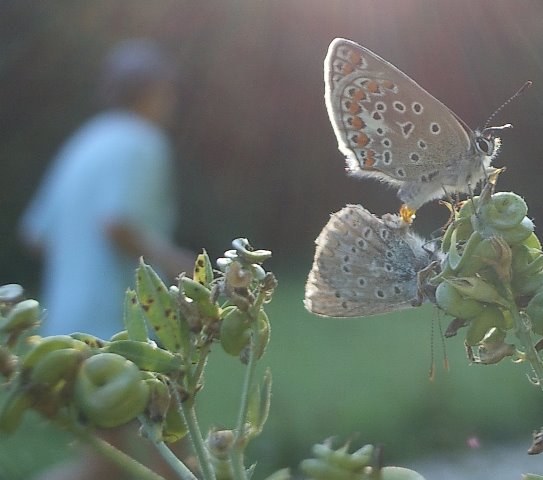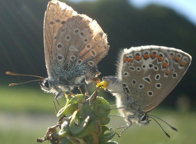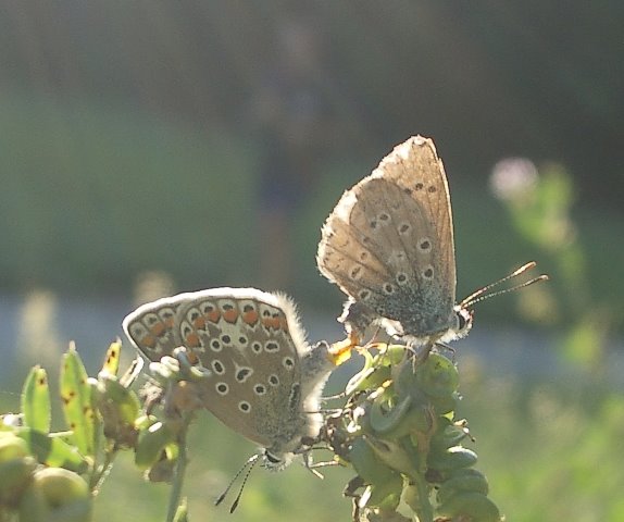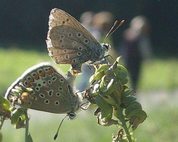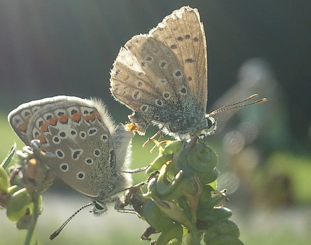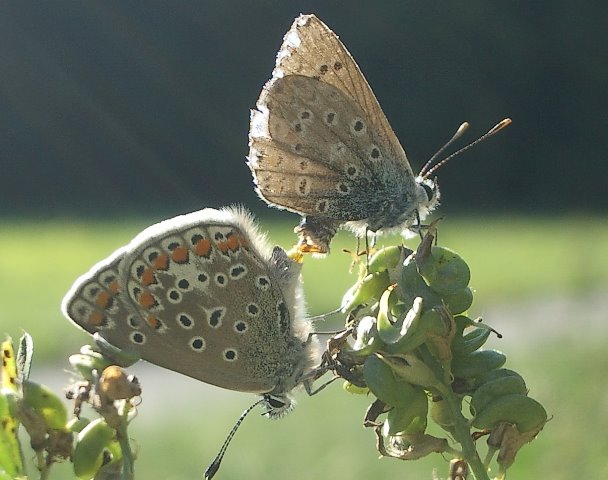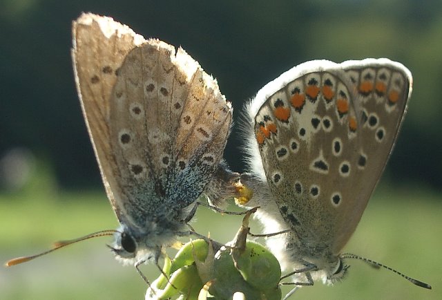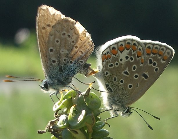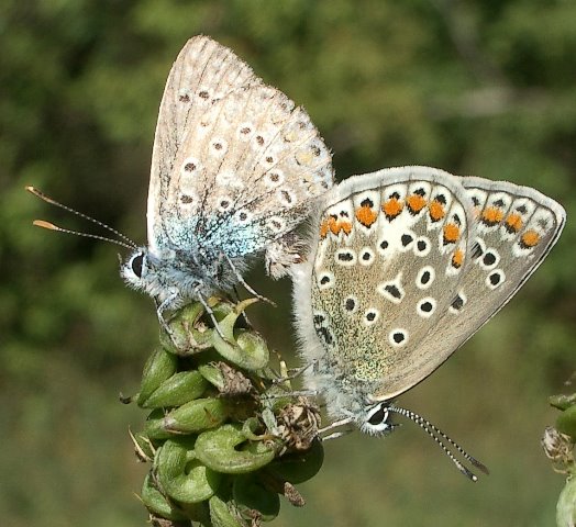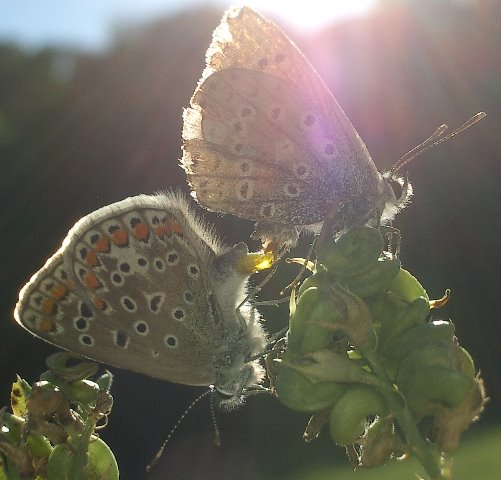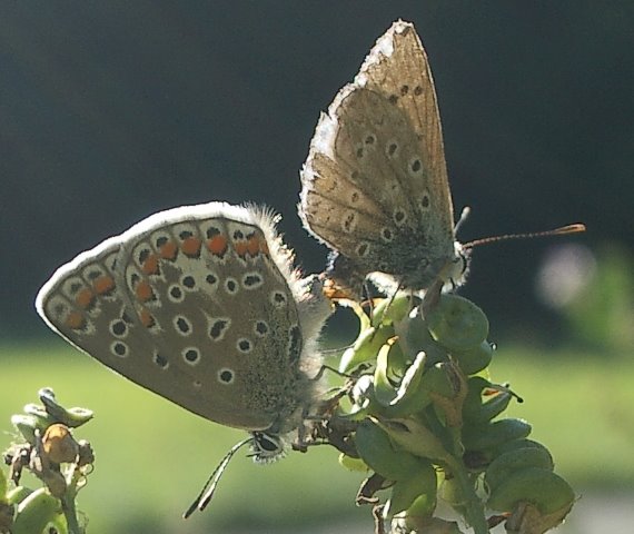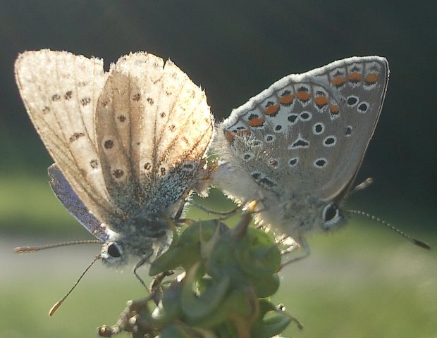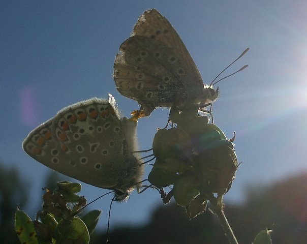 Eine Paarung im Urwald von St.Andre genau dieser Bläulingsart hatten wir auch schonmal im Chassezac-Gebiet beobachtet und fotografiert. Hat auch damals sehr lange gedauert. Allerdings war damals das Männchen nicht so arg zerzaust wie dieses Exemplar im Glemstal.