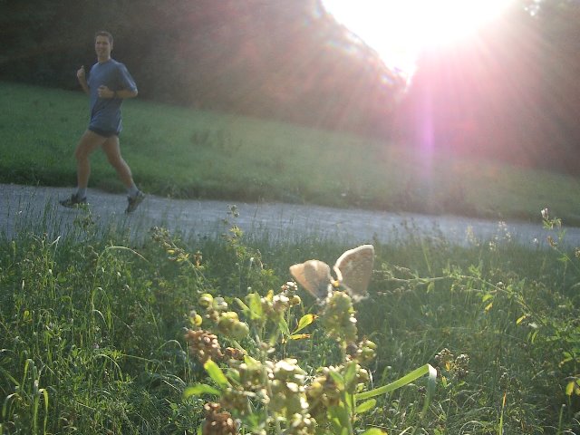 18.9.04, 16:40 gr. Wiese Dieser freundliche Jogger hat mich gesehen |