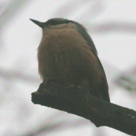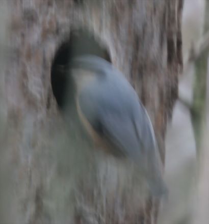 | Kleiber auf Ast ca. 10m entfernt von seiner Höhle | per EBV gezoomt und aufgehellt | fliegt zu seinem Loch Vögel-im-Glemstal |