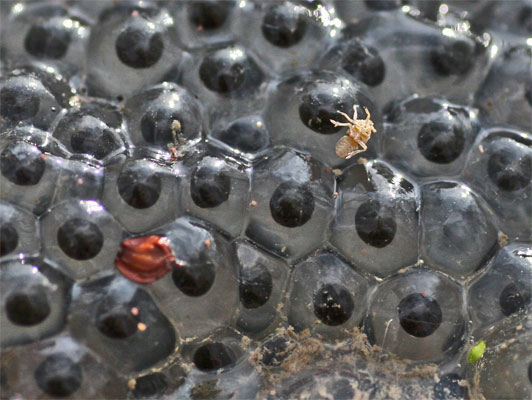 Mini-Bernstein-Schnecke vor Froschlaich → Schnecken-im-Glemstal |