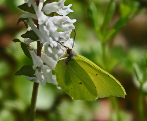 Zitronenfalter Weisslinge-im-Glemstal auf hohlem Lerchensporn (corydalis cava) mehr zu Fumariaceae-im-Glemstal |