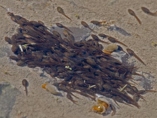 Die Kaulquappen schliessen sich gerne zusammen zu strudelnden
