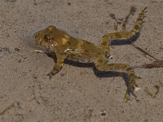 Die Gelbbauchunken sind von oben unscheinbare Tiere. Die Augen sind