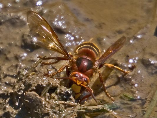 Feuersalamanderlarven und eine Hornisse war am Trinken. Gelbbauchunken sind