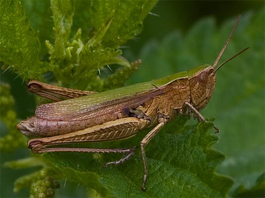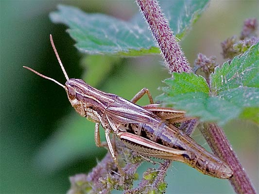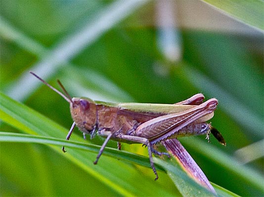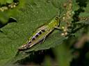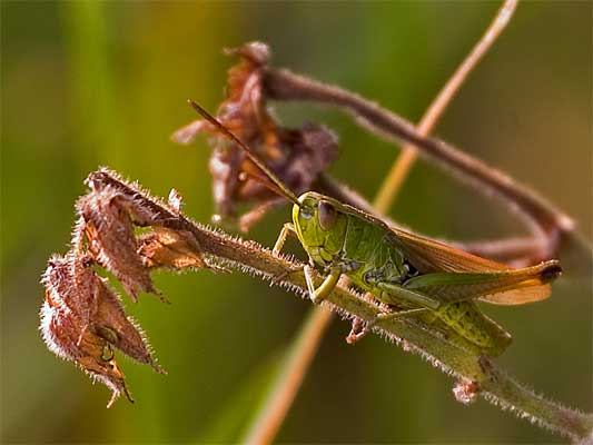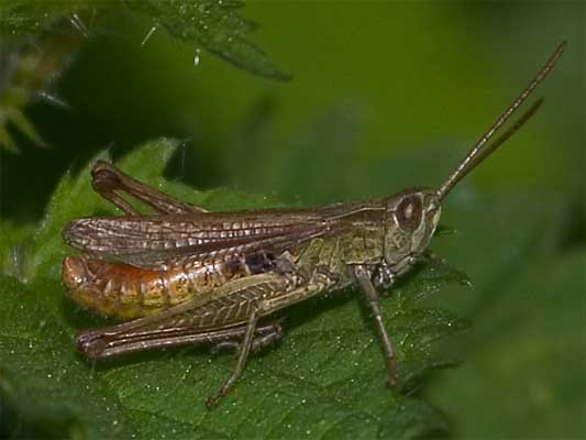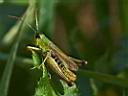 | Kennzeichen: Augen braun, Rücken grün, Bauchseite grüngelb, lange Flügel Wiesen-Grashüpfer (Chorthippus dorsatus) (Danke an Norbert Baasner für die Artbestimmung) ... mehr über unsere → Schrecken im Glemstal |