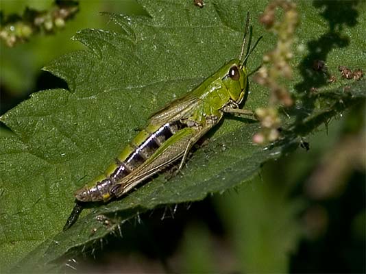| gemeiner Grashüpfer Chorthippus parallelus! Männchen sitzt in ganz lässiger Pose auf seinem Halm s. Heuschrecken-im-Glemstal |
